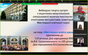 18 вересня 2023 року кафедрою музичного мистецтва Миколаївського національного університету імені В.О.Сухомлинського була проведена творча вебінарна зустріч з вчителями Миколаївщини, випускниками спеціальності музичне мистецтво.