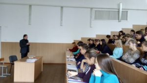 14 грудня в рамках програми « 10 кроків проти корупції» на факультеті педагогіки та психології відбувся студентський форум « Університет-теріторія Закону». Зі студентами зустрівся начальник Миколаївського відділу Миколаївської місцевої прокуратури №1 Максим Митрофанов. Він зосередив увагу присутніх на етичних та карних сторонах явища корупції, застерігав від спроб вирішення питань не правовими шляхами, роз’яснив що може розцінюватися як хабар і нагадав про відповідальність суб’єктів навчання у разі скоєння корупційних дій.