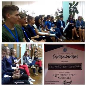 14-16 вересня 2018 р. студенти-магістри спеціальності «Психологія» денної форми навчання долучилися у ролі тренерів до проекту локальна Школа успіху «Carpe Diem» для соціально-активних старшокласників м. Миколаєва, який проходив на базі Миколаївської міської ради.