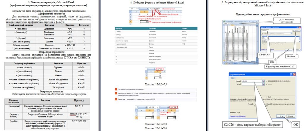 - Різновиди операторів у Microsoft Excel та особливості їх застосування (арифметичні оператори, логічні оператори, оператори посилань)